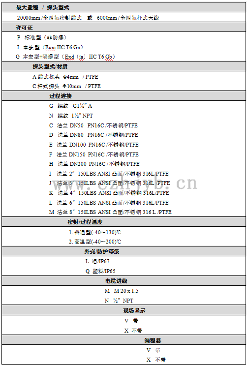 天 線:全四氟密封纜式或桿式天線